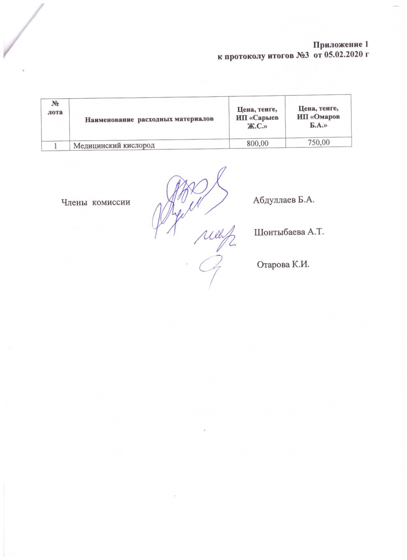 • Протокол №3 об итогах закупа способом запроса ценовых предложений на расходные материалы для гемодиализа от 05.02.2020 г.